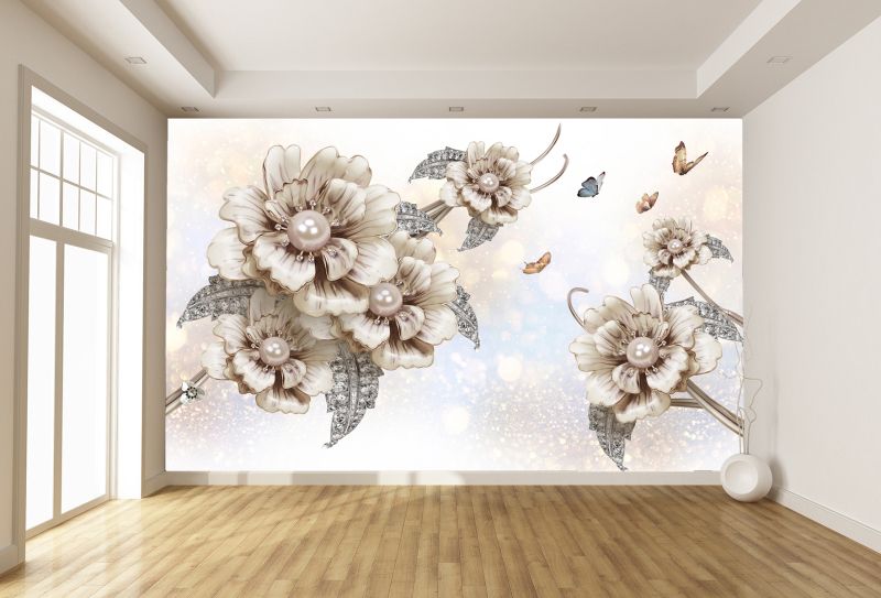 T9158 Wallpaper 3D Composition with flowers and jewelry