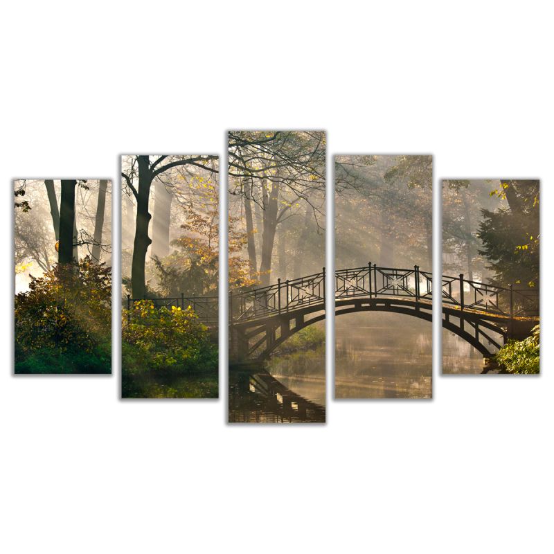0127 Wall art decoration (set of 5 pieces) Bridge in the forest