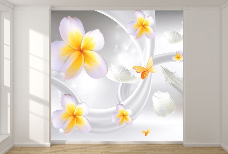 T9199 Wallpaper 3D Abstraction with flowers and feathers