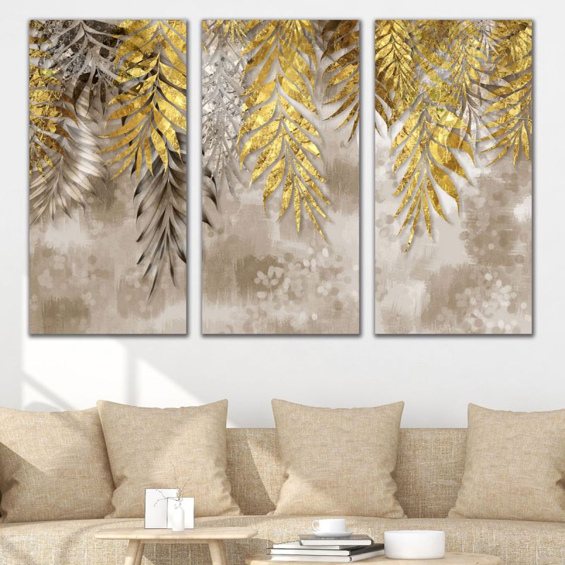 0953 Wall art decoration (set of 3 pieces) Golden leaves