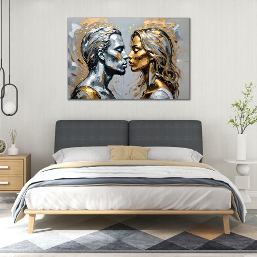 1046 Wall art decoration Man and woman - Abstraction in gold and silver