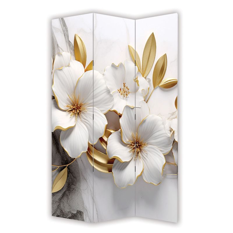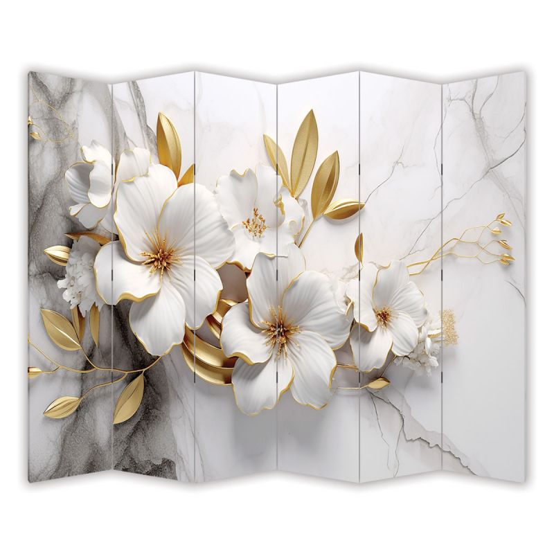 P1059 Decorative Screen Room divider Flowers in white and gold (3,4,5 or 6 panels)