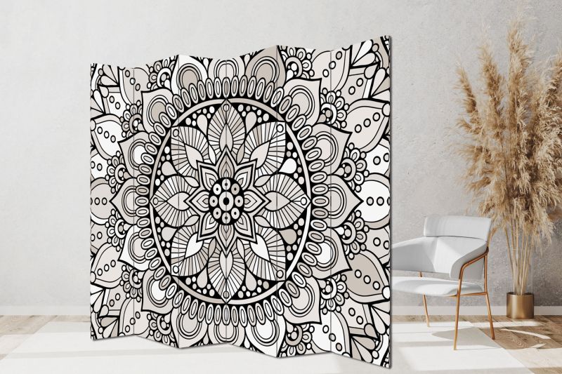 P9321 Decorative Screen Room divider Mandala - black and beige (3,4,5 or 6 panels)