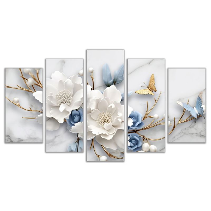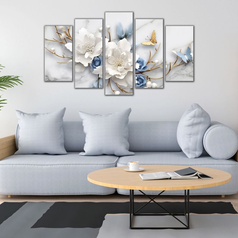 1103 Wall art decoration (set of 5 pieces) Blue whisper among white dreams