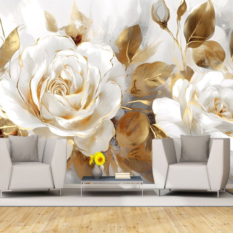 T1102 Wallpaper 3D White rose in golden glow