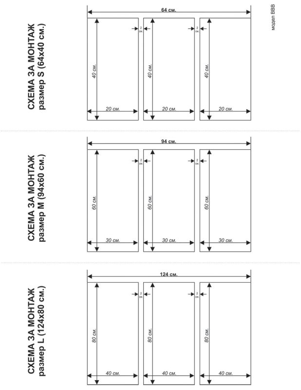S  size: Overall dimensions 64х40 cm (20х40 cm - 3 pcs.)