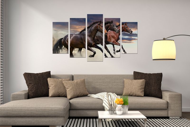 0526 Wall art decoration (set of 5 pieces) Wild horses