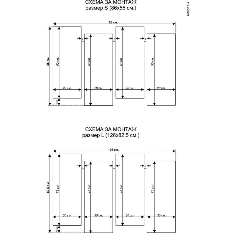 L size: Overall dimensions 126х82.5 cm (30х75 cm - 4 pcs.pcs.)