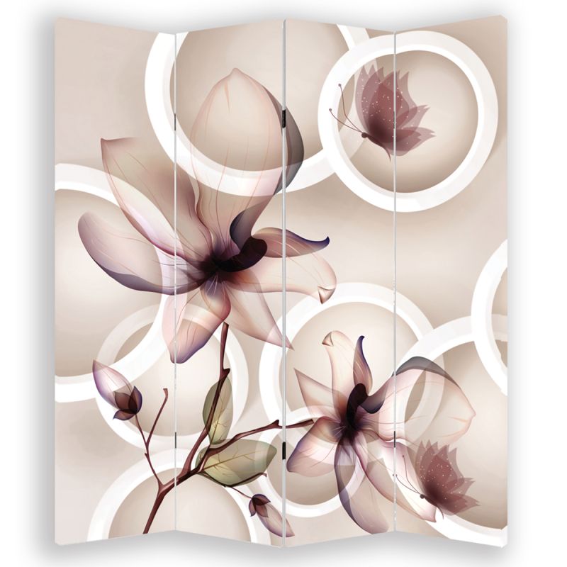 P9155 Декоративен параван 3D Цветя и кръгове (3, 4 , 5 или 6 части)