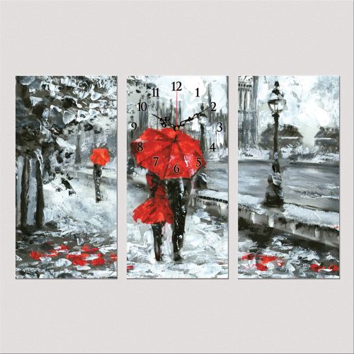 C0418_3 Стенен часовник от 3 части с принт Влюбени в Лондон