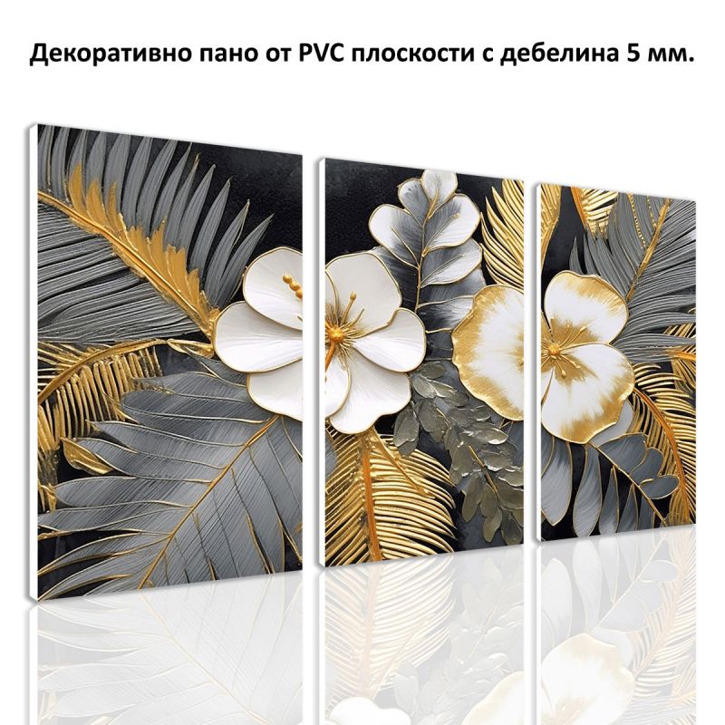 0999 Картина пано от 3 части Абстрактни бели цветя