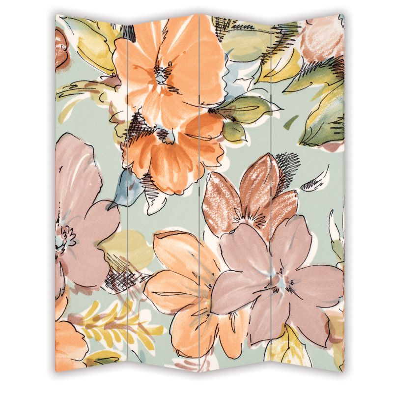 P1021 Декоративен параван Абстракция с цветя в пастелни цветове (3, 4 , 5 или 6 части)