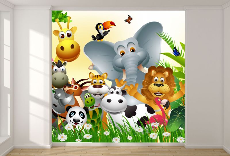 Цветен и весел фототапет, който ще превърне детската стая в истинска джунгла на усмивките. Симпатичните животни създават топла и приятелска атмосфера. Идеален за детски стаи, детски градини, занимални или зони за игра.