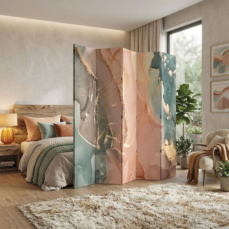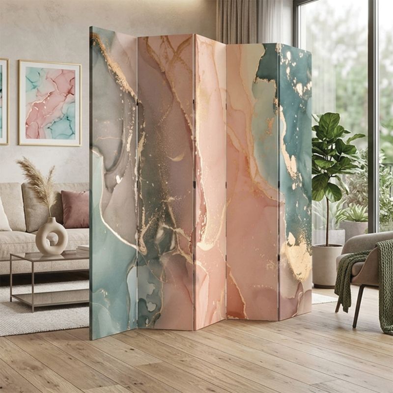 P9323 Декоративен параван Абстракция в нежни розови и тюркоазени нюанси (3, 4, 5 или 6 части)