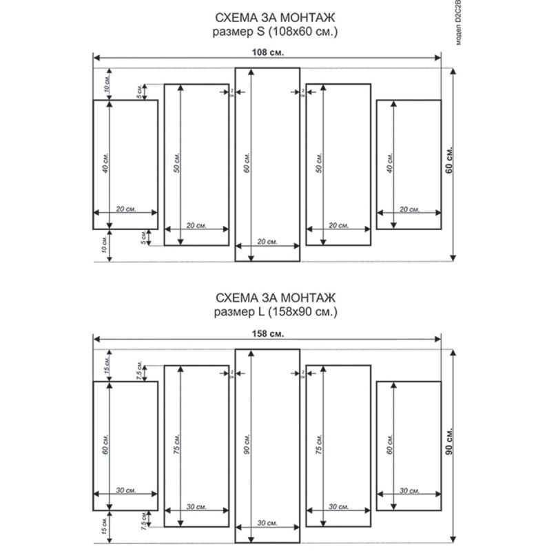 S – общ размер 108х60 см. (20х40 см. - 2 бр., 20х50 см. - 2 бр., 20х60 см. - 1 бр.)