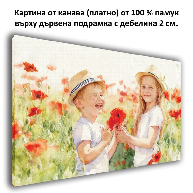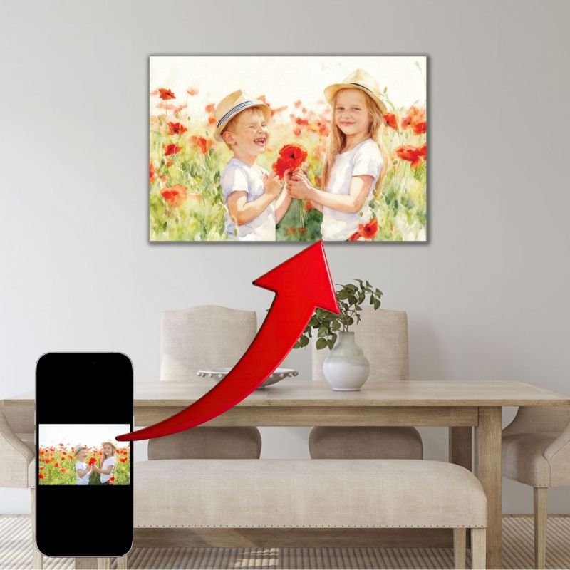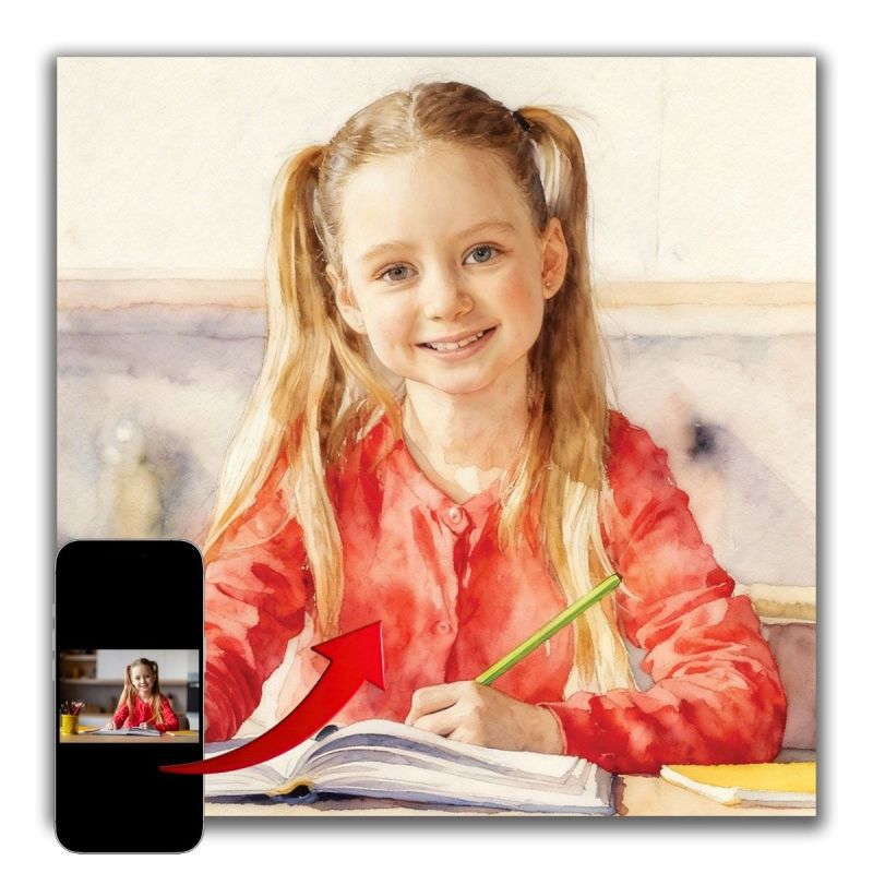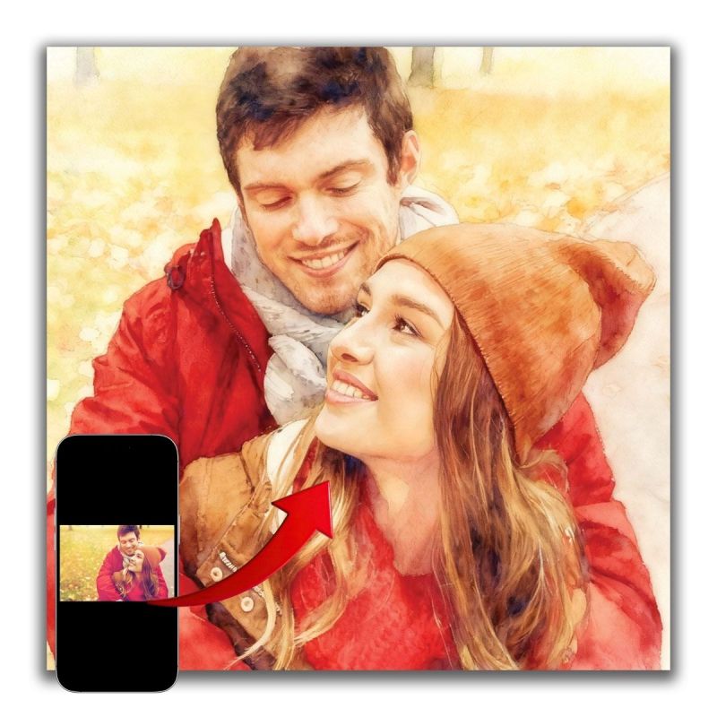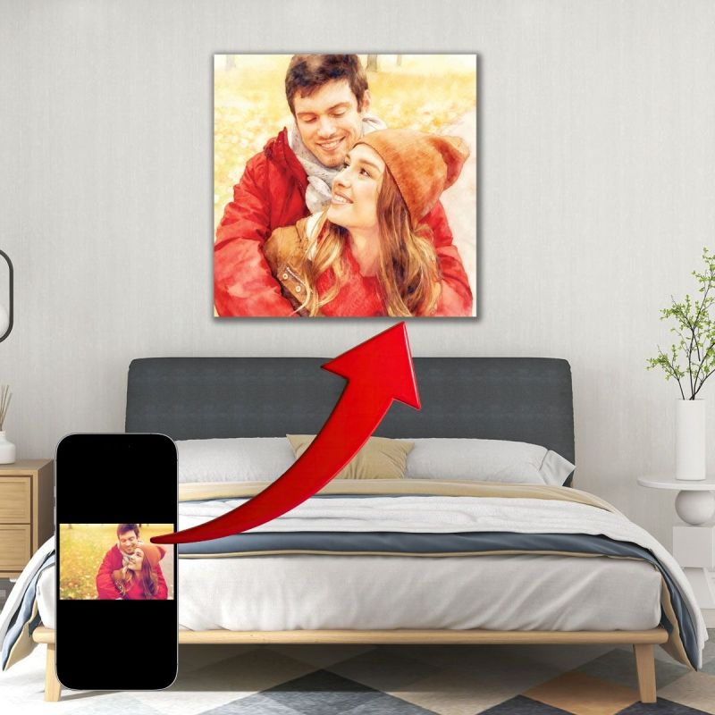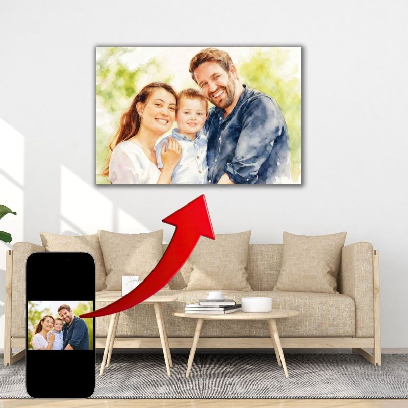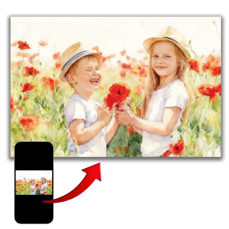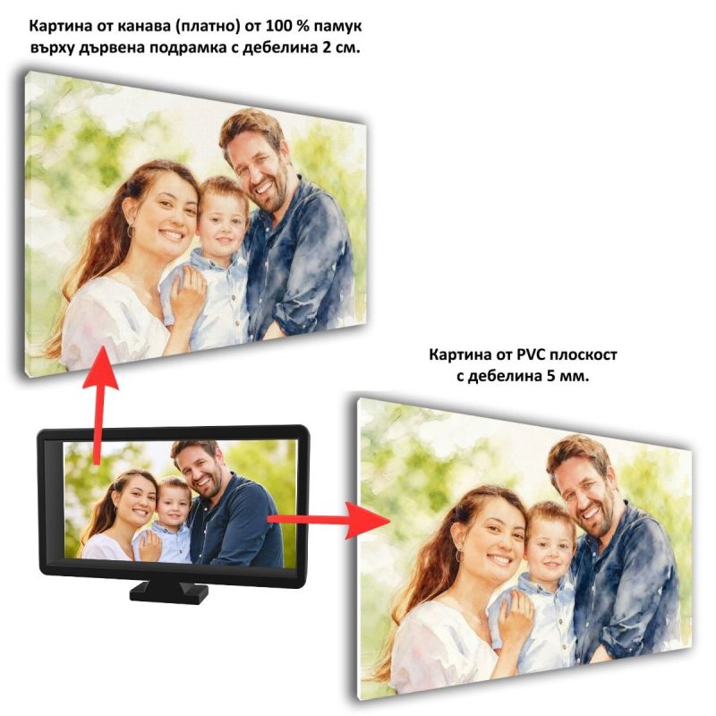 Картина от снимка с мек акварелен ефект. Превърнете любима снимка в стилна картина за стена с дигитален акварелен ефект. Персонализираният портрет се изработва като висококачествен принт върху PVC плоскост или канава с дървена подрамка. Специален спомен, превърнат в стилна картина за стена – подарък с емоция и значение.