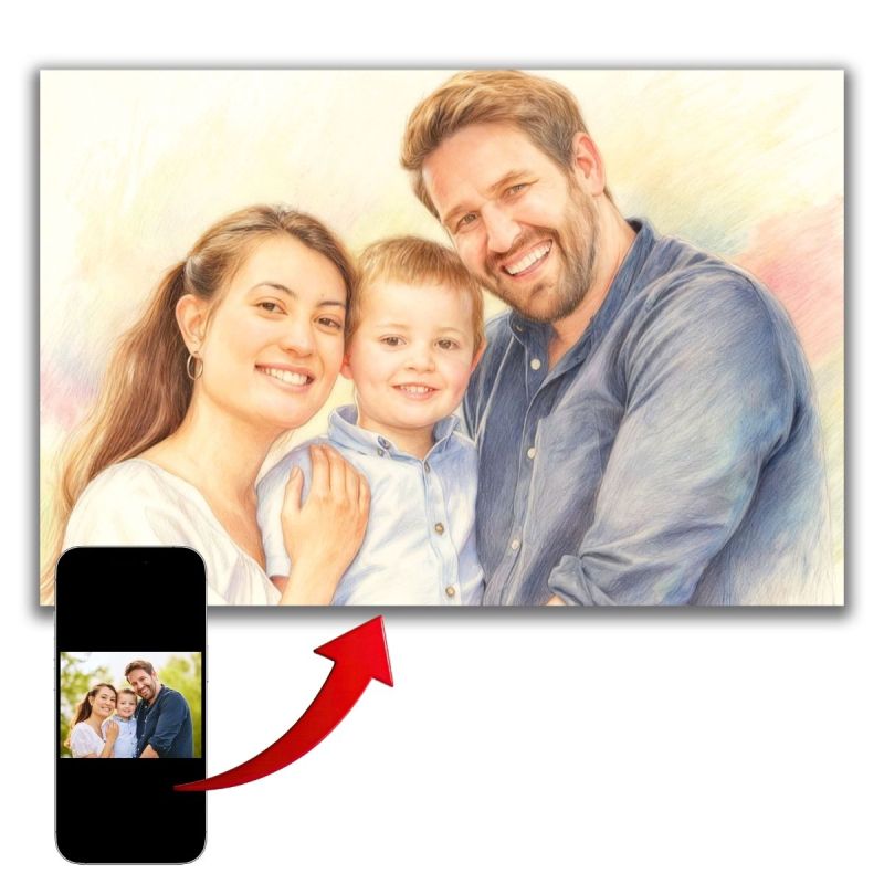 Дигиталният портрет с ефект пастел или молив превръща ваша снимка в изискано художествено изображение с мек контур и естествени тонове. Някои снимки пазят повече от образ – те носят усещане, близост и история. Дигиталният портрет с ефект пастел или молив превръща този момент в стилна и емоционална картина за стена. Висококачественият принт върху PVC плоскост или канава с дървена подрамка създава усещане за лукс и завършеност. Предлага се в различни квадратни и правоъгълни размери, съобразени с интериора. Добавете лично послание, дата или име и превърнете творбата в символ на любов, семейна връзка или специален повод. Подарък с истинска стойност – не просто декорация, а спомен, който живее в интериора.