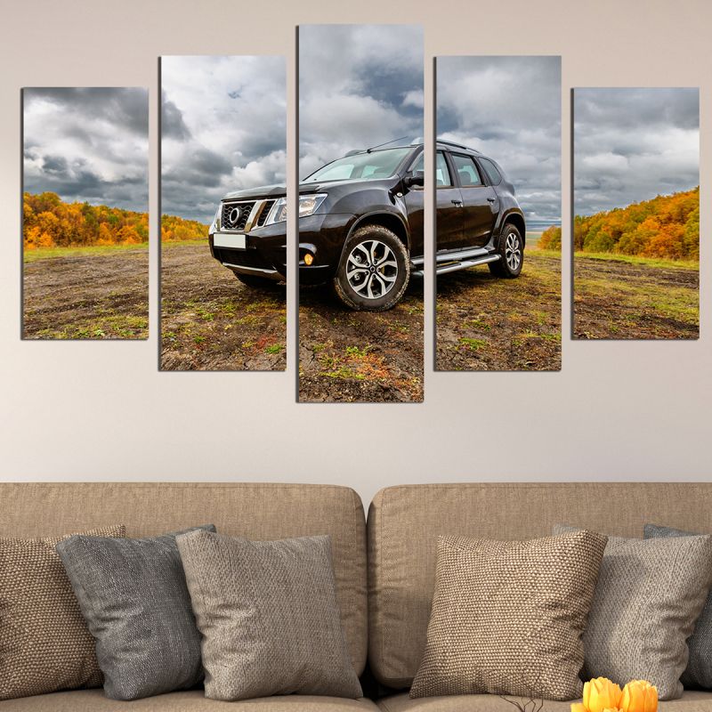 0713 Картина-пано от 5 части Пейзаж с автомобил